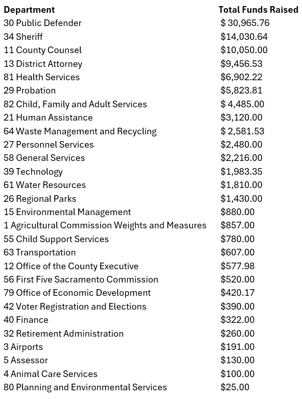 On behalf of the Board, thank you for your compassion, generosity, and commitment to making the 2025 Sacramento County Employee Giving Campaign a success.